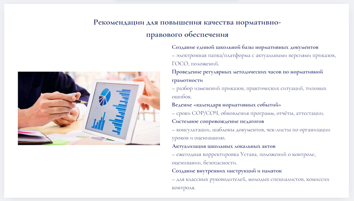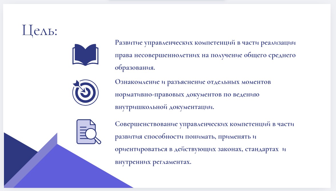 Нормативтік-құқықтық базаны зерделеу, жүйелеу және практикалық тұрғыда қолдану, сондай-ақ басқарушылық шешімдердің заңдылығын, ашықтығы мен жауапкершілігін арттыру жолымен директордың орынбасарының тиімді жұмысын қамтамасыз ету мақсатында 18.12.2025 жылы ҚОӘББ «Қостанай қаласы білім бөлімінің №1 мектеп-лицейі" КММ директордың ОІ жөніндегі орынбасарлары Н.Б.Ерденова мен Т.Б.Федулова «Оқу жұмысын құжаттамалық қамтамасыз ету: тәжірибе мен ұсынымдар» тақырыбында «Директордың орынбасарның жұмысын нормативтік-құқықтық қамтамасыз ету» атты облыстық вебинарға қатысты. Бұл вебинар тәжірибелік және ұсынымдық бөліктерден тұрды.