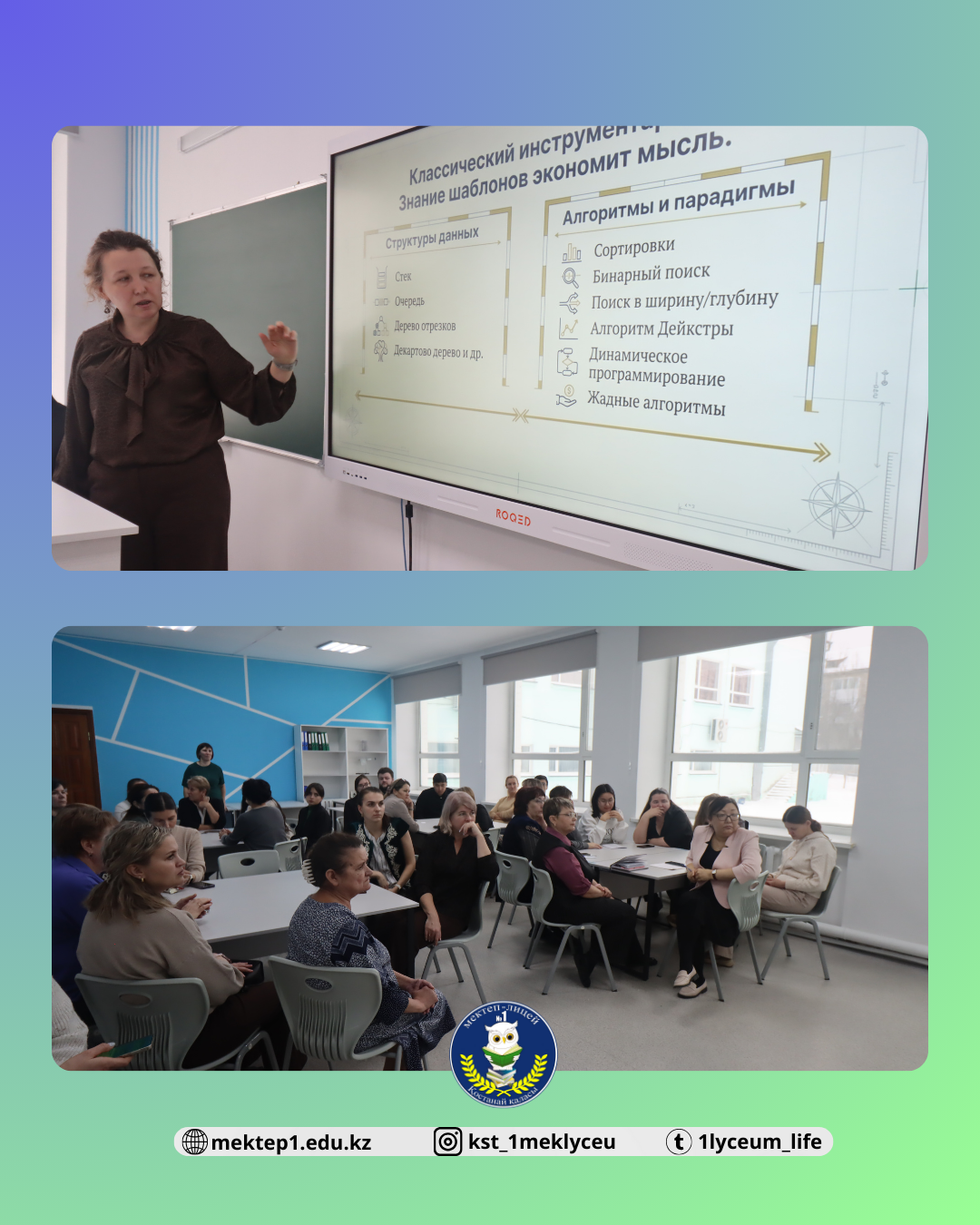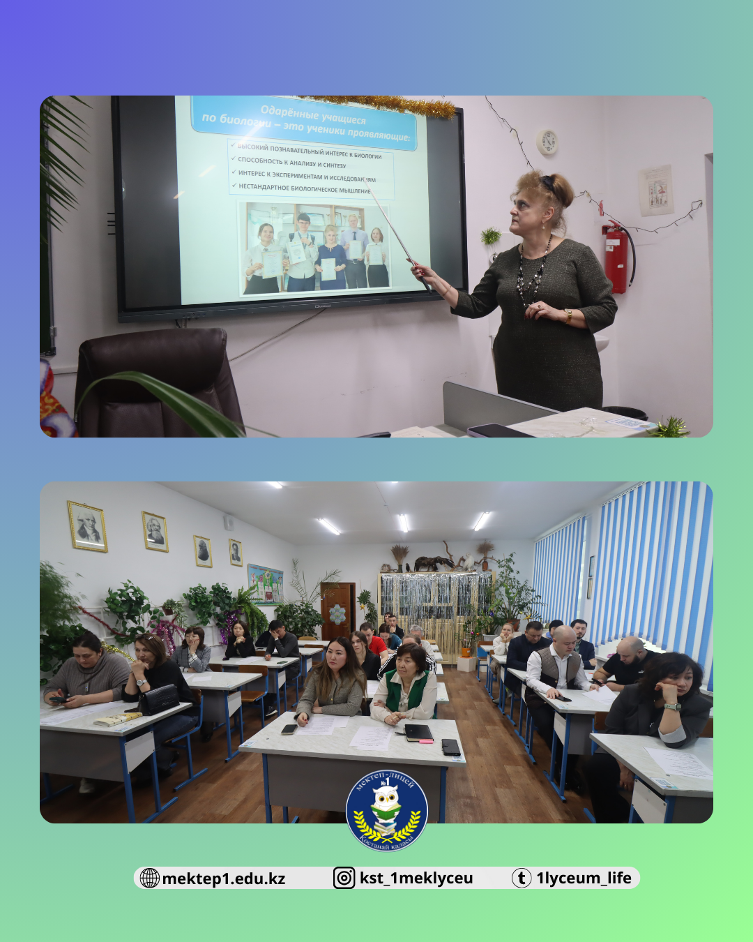 2025 жылы 29 желтоқсан күні №1 мектеп-лицейінде «Дарынды оқушылармен жұмыс жүргізудегі тиімді педагогикалық тәжірибелер: оқыту нәтижелілігін арттыру және мұғалімдердің кәсіби өсу жолдары» тақырыбында педагогикалық кеңес өтті.