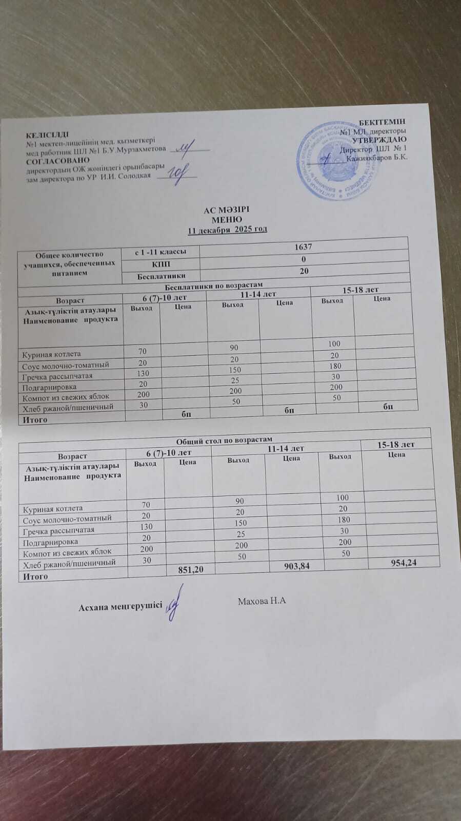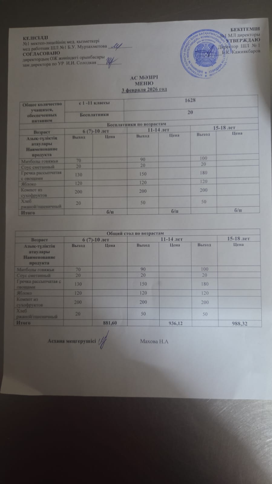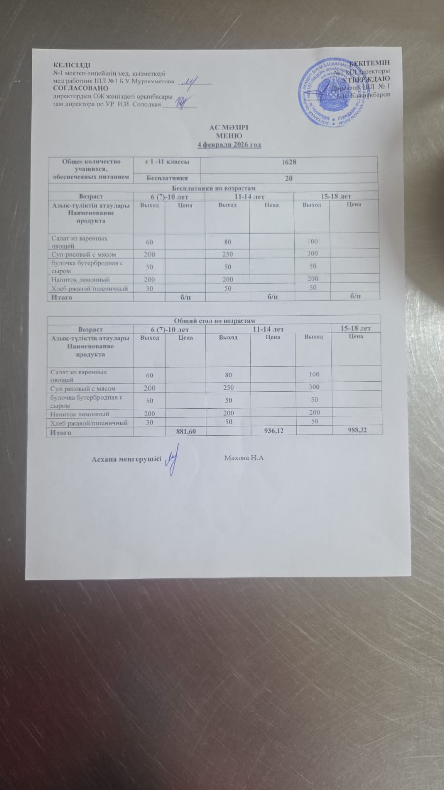 Ыстық тамақты ұйымдастыру/Организация горячего питания