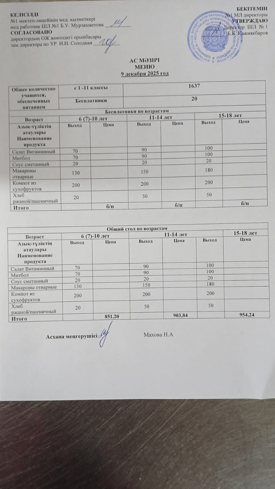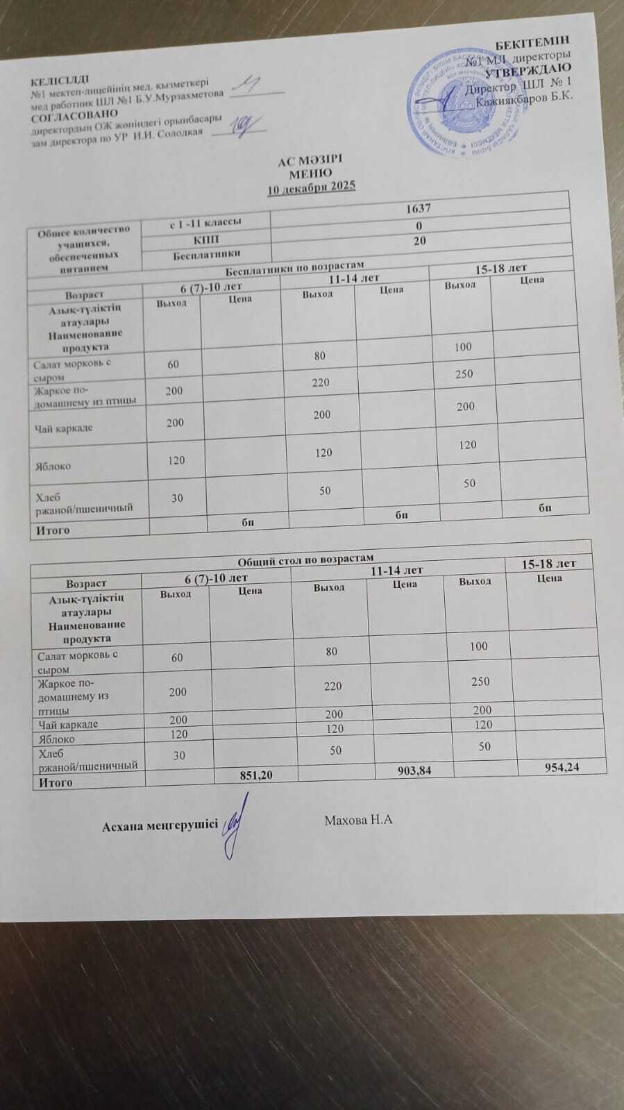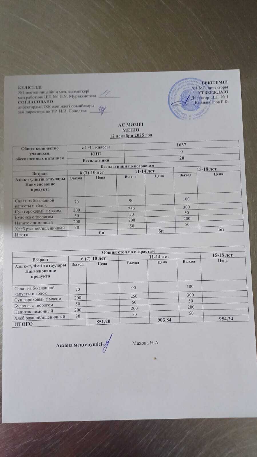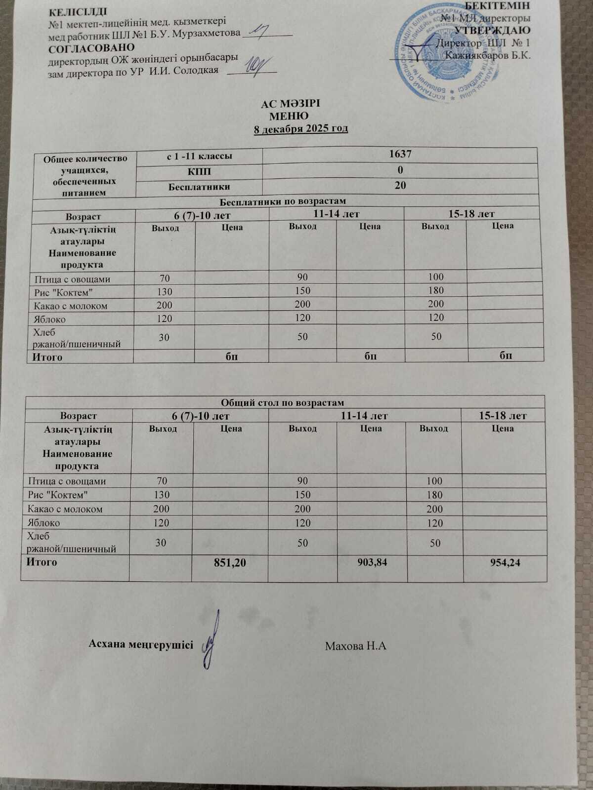 Ыстық тамақты ұйымдастыру/Организация горячего питания